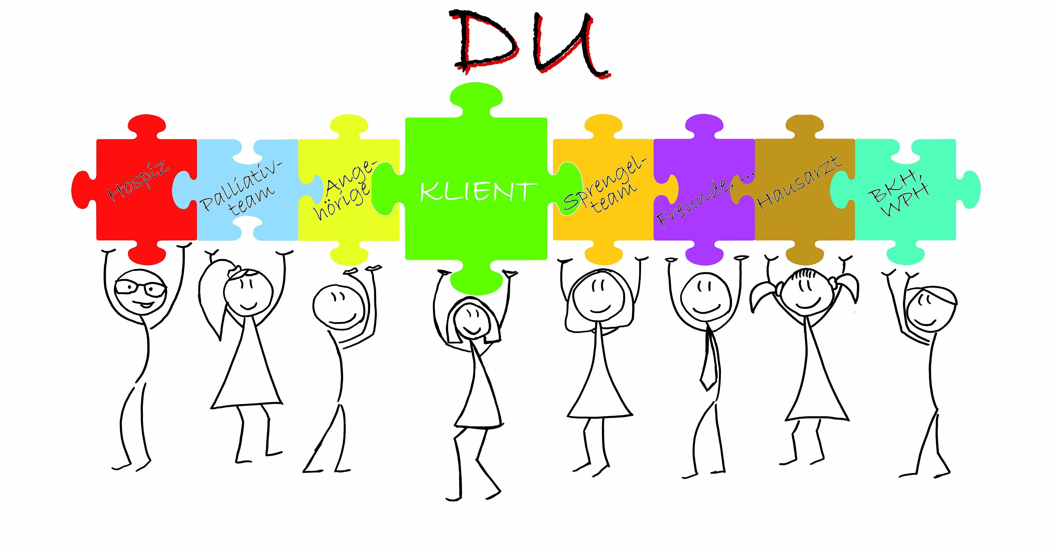 Im Mittelpunkt stehen die Klient*innen. Wir Mitarbeiter*innen vom Sozial- und Gesundheitssprengel machen uns gemeinsam auf den Weg, um zusammen mit unseren Systempartner*innen und allen, die die Klient*innen in ihrer letzten